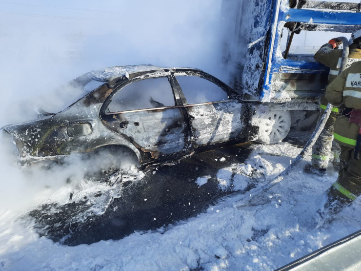 "В 14.14 на автодороге Нур-Султан - Петропавловск, в районе Щучинска, в результате плохой видимости произошло ДТП с возгоранием легкового автомобиля на площади 10 квадратных метров. Пожар ликвидирован в 14.40. Жертв и пострадавших нет. На ликвидацию пожара выезжали 10 сотрудников ДЧС и две единицы техники", - сообщили в ДЧС.