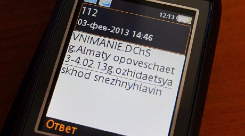 Напомним, 3-4 февраля 2013 года алматинцы получили на свои мобильные устройства SMS-предупреждения о возможном сходе лавин в горах со следующим текстом: "Внимание! ДЧС города Алматы. В горах 3-4 февраля 2013 года ожидается сход лавин". Как пояснили в департаменте, информацию от РГП "Казгидромет" они получили 3 февраля в 11.00 и уже в 12.12 ДЧС оповестил об этом сотовых операторов.