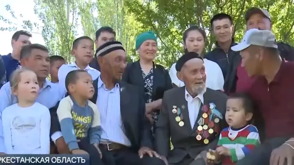 Фронтовик - гордость всего Казыгуртского района. "В родной аул отец вернулся в конце 43-го года. Он рассказывает, что село тогда было в упадке. Все пришлось строить с нуля. Он и другие мужчины обрабатывали землю, сеяли пшеницу. Время наших отцов и дедов было тяжелым, а у нас есть все и это надо ценить", - говорит сын ветерана Абдуали Жумабаев.