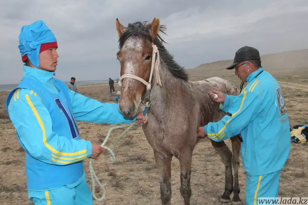 Испытания скакунов проходили в степях Мангистау. Для проверки были отобраны 37 лучших жеребцов, которым пришлось преодолеть 90 километров. На каждой из четырех остановок лошадей проверяли ветеринары. Специалисты замеряли пульс скакунов. "Если он до 64 ударов, это считается нормой, и лошадь продолжает испытание", - рассказал ветеринар Жумабай Кусаинов. Он отметил, что тест могут пройти не все животные. В итоге до финиша дошли менее 20 жеребцов.