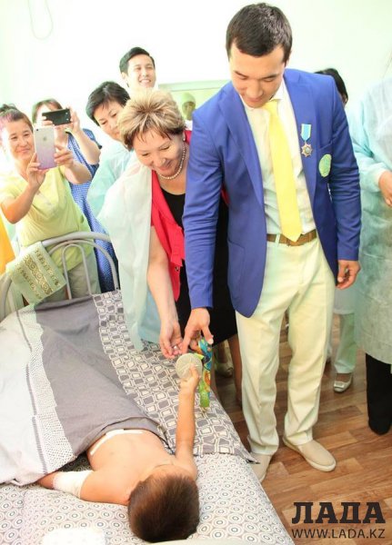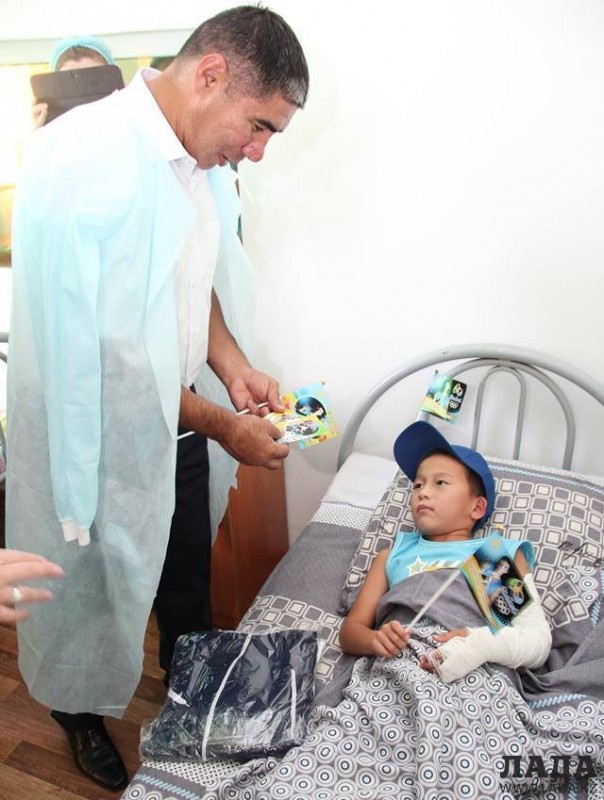 "Ребята были очень рады приходу олимпийцев. Пострадавшие в ДТП получили в подарок спортивную форму с символикой "Маңгыстау". Этот подарок для того, чтобы дети знали, что они члены сборной области, отметили представители акимата. Боксеры сфотографировались с детьми. А Адильбек Ниязымбетов показал дзюдоистам свою медаль", - говорится в публикации.