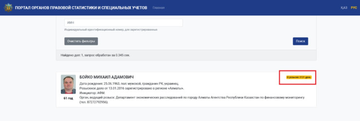 Отметим, что, согласно порталу органов правовой статистики и специальных учетов Генеральной прокуратуры Казахстана, Михаил Бойко находится в розыске с 13 января 2016 года.