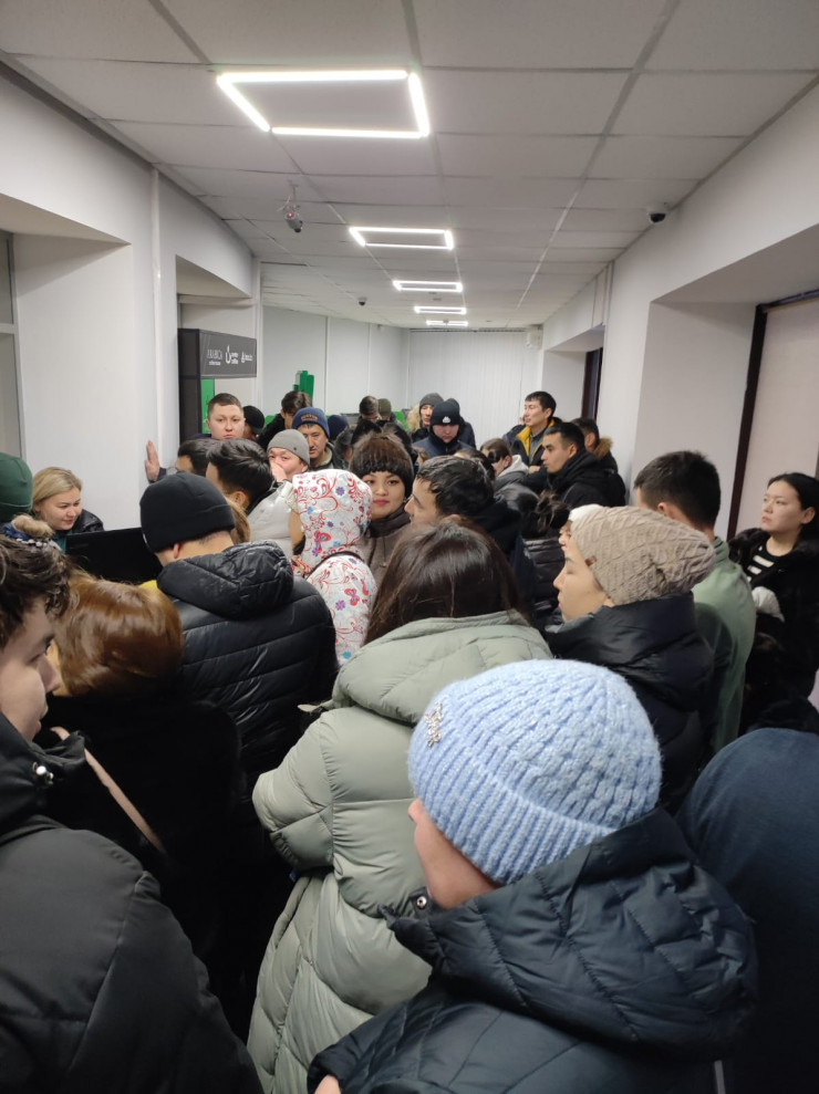 Очередь, как отметила Мадина, двигается довольно медленно. По состоянию на 10:50 утра на оформлении был только третий человек.