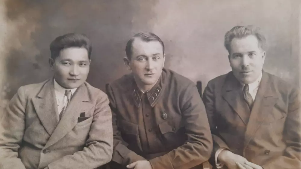 Жұмажан Тәттібаев оң жақта ең шетінде отыр.