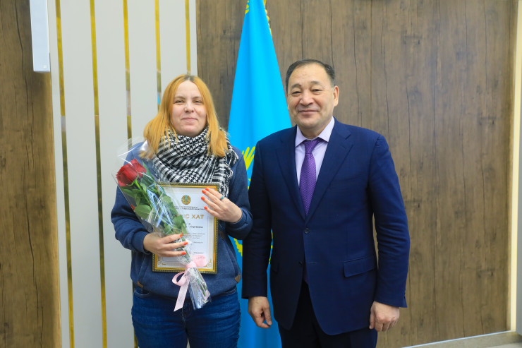 Аким области поблагодарил журналистов и работников пресс-служб за их огромный вклад в информирование населения о социально-экономическом развитии региона, вручив собственному корреспонденту агентства "Хабар" в Актюбинской области Наталье Сальковой и корреспонденту областной общественно-политической газеты "Ақтөбе" Гульжан Абдибековой нагрудный знак "Ақпарат саласының үздігі".