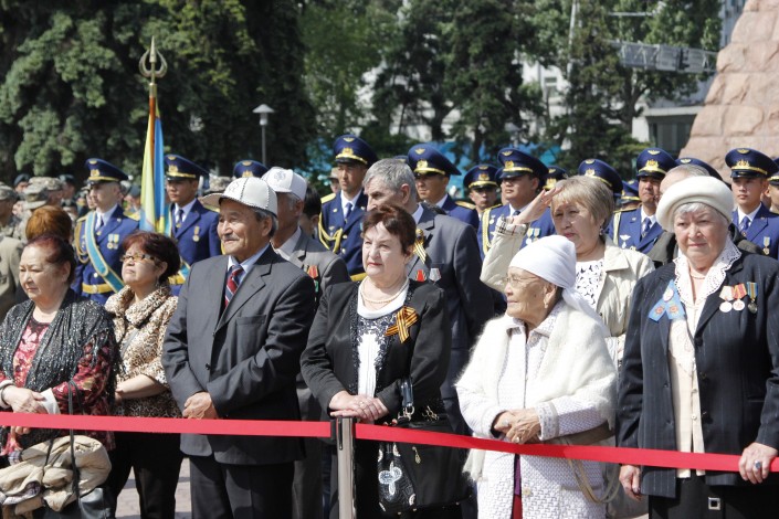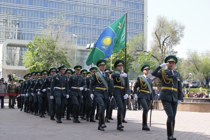 После на площади Абая прошли показательное выступление с оружием курсантов службы Государственной охраны и маршировка других военнослужащих. Всего в мероприятии приняли участия более 500 военнослужащих. Праздник завершился выступлением артистов. Организатором мероприятия выступил Департамент по делам обороны Алматы.