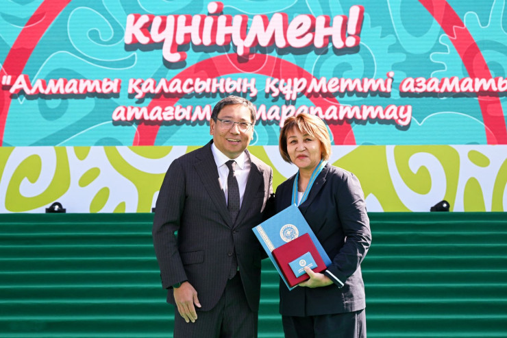 Глава города по традиции отметил вклад в развитие города самых достойных горожан, присвоив им звание "Почетный гражданин города Алматы". В их число вошли художник Алексей Уткин, живописец Ерболат Төлепбай, композитор Ерулан Канапьянов, поэт Есдаулет Ұлықбек, доктор технических наук Жумабай Байнатов, председатель Совета аксакалов Ахметжан Шардинов, директор Центра перинатологии и детской кардиохирургии Гульнара Нурланова, почетный авиатор Дмитрий Душимов и бизнесмен, меценат Нурлан Смагулов.
