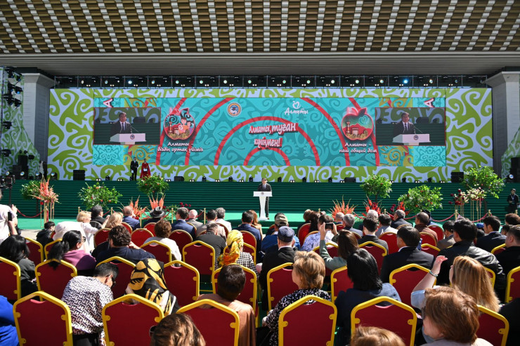 Торжества начались с семейного фестиваля "Алматы – наш общий дом" на площади имени Абая, где аким города Ерболат Досаев обратился к алматинцам со словами поздравления.
