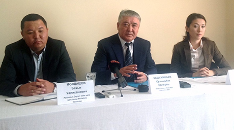 Аким нового Наурызбайского района Алматы пожаловался на водоснабжение и дороги Аким Наурызбайского района Куанышбек Кашкимбаев (в центре). ©Роза Есенкулова
