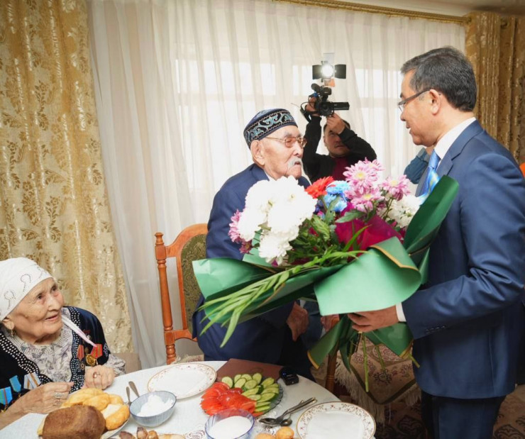 Вместе с тем аким области посетил Абдуали Имаханова, который работал в годы ВОВ в тылу, был целинником.