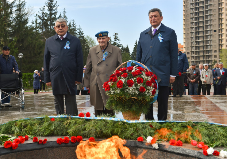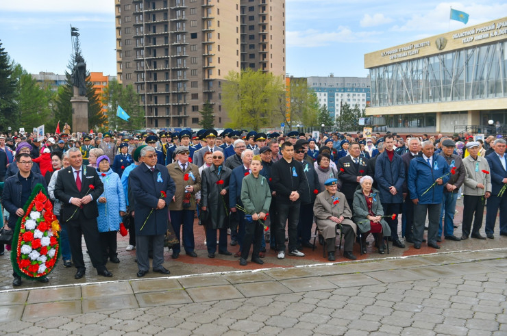 На церемонию возложения пришли общественность региона и многие североказахстанцы. Страшная война коснулась каждой семьи нашей страны. Сегодня все чтят память вечно молодых солдат, которые отдали жизнь во имя светлого будущего нашей родины. Аким области Гауез Нурмухамбетов поздравил североказахстанцев с Днем Победы.