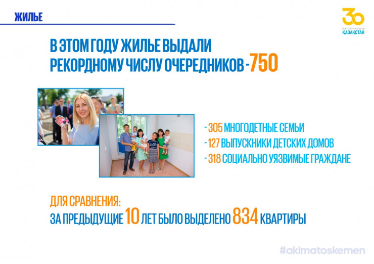 Отдельно Даниал Ахметов остановился на работе по обеспечению населения социальным жильем. В этом году акимату Усть-Каменогорска удалось обеспечить новым жильем более 750 очередников. Для сравнения, за прошлые 10 лет ключи получили всего 834 нуждающихся.