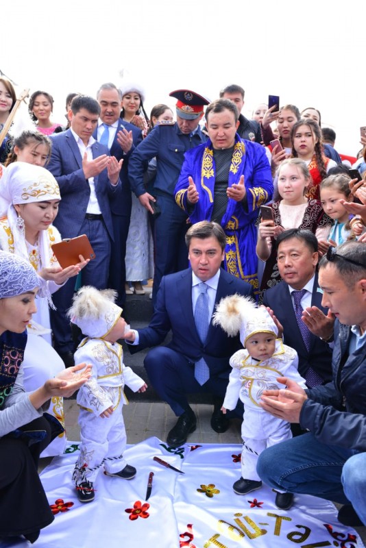 Тем временем неподалеку уже организовали площадку для проведения обряда тусау кесу - разрезание пут. По традиции честь разрезать путы малышам, которые делают свои первые шаги, доверяют самым уважаемым людям. Не трудно догадаться, что сегодня этой чести был удостоен аким города. К слову, на площади Наурыз развернулся юрточный городок. На площади можно было насчитать не менее 20 юрт. В каждой из юрт гостей угощали национальными блюдами и главным блюдом Наурыза - наурыз-коже.