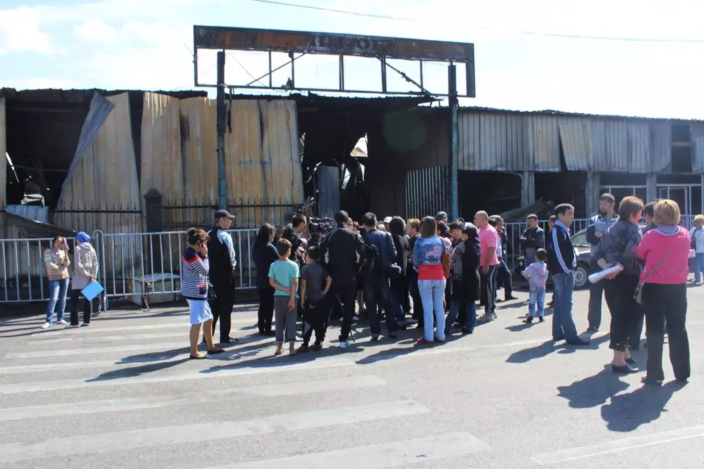 Пожар начался 13 сентября на рынке "Олжа", а позже огонь перекинулся на рынок "Аян", также частично задел "Керемет" и "Алатау", площадь возгорания, по информации ДЧС Алматы, составила более 5400 квадратных метров. Пожар удалось локализовать в 19.59, а ликвидировать в 06.38 14 сентября. Всего в ликвидации возгорания были задействованы 1518 человек, 142 единицы техники, два вертолета.