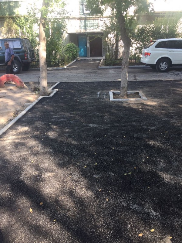 "Это детская площадка. Неделю назад стояли качели, песочница, была тень от деревьев. Было все. На следующий год сдохнут эти деревья, домики будут строить из бордюров, которые развалятся к лету. (...) Мы эти деревья всем двором сажали лет 30 назад. А теперь они просто погибнут", - написала алматинка Евгения Лейман в Facebook.