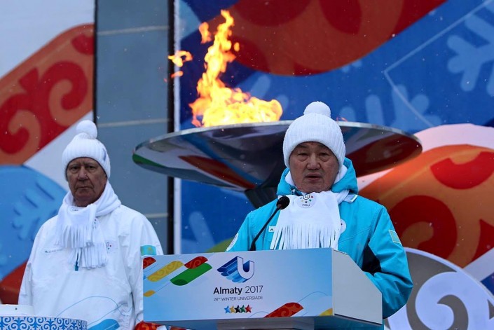Аким Астаны Асет Исекешев окружил себя молодыми и энергичными, но высокий рост все равно выделял его на фоне участников эстафеты. Огонь Универсиды пылал вовсю, видимо, это стало причиной того, что глава второй самой холодной столицы мира решился проводить мероприятие на открытом воздухе без головного убора.