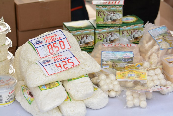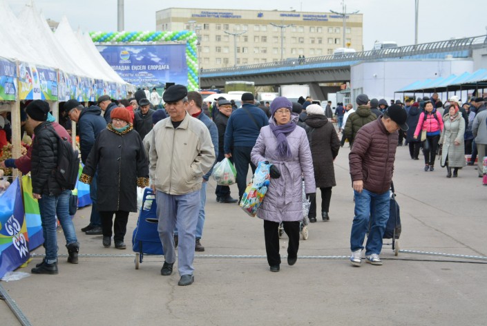 Цены, по данным пресс-службы акимата региона, значительно ниже столичных. Например, конину здесь отпускали по 1500 тенге, яйца в зависимости от категории от 18 до 21 тенге за штуку, картофель и морковь - по 60 тенге, кумыс и шубат - по 600 тенге и многое другое.