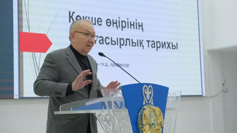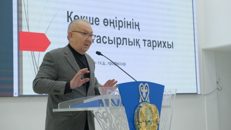 С докладом "Көкше өңірінің ортағасырлық тарихы: саяси-экономикалық дамуы, хан ордалары мен сауда жолдары" выступил доктор исторических наук, академик Академии социальных наук РК, профессор ЕНУ имени Гумилева Жамбыл Артыкбаев.