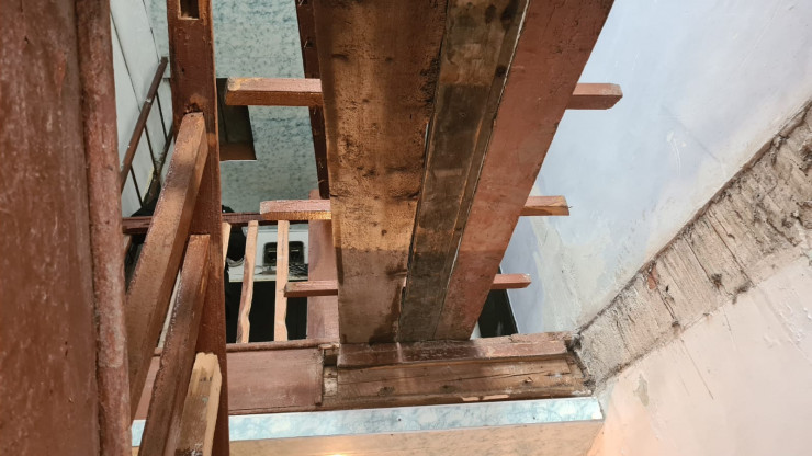 По официальным данным, двухэтажка, где накануне рухнула лестница, была построена в 1960 году. Сегодня на место прибыли рабочие, которые собираются установить новые лестницы, но уже не деревянные, а металлические.