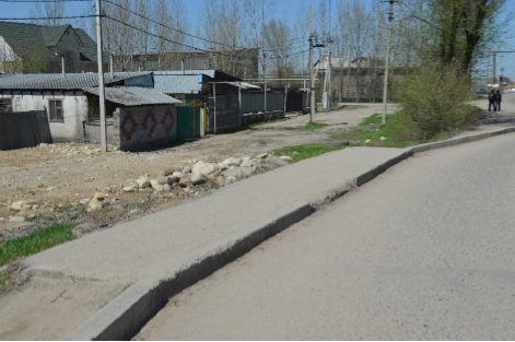 Исследование дорожного покрытия вокруг показало, что на 62 процентах остановок асфальт и бордюры нормальные (старые, но ровные), на 15 процентах - бордюры разбиты, либо их нет совсем, на 12 процентах - асфальта и бордюров нет.