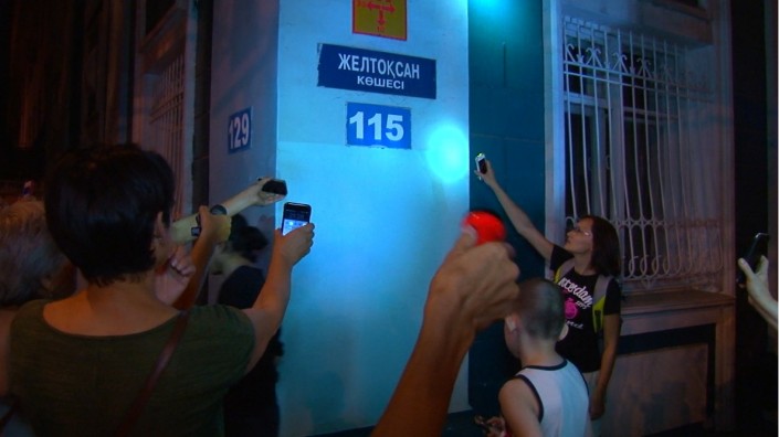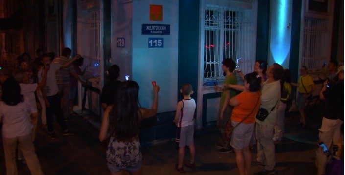 Оригинальный флешмоб члены инициативной группы "Защитим Алматы" и просто жители города провели возле того самого здания №115 на улице Желтоксан - угол улицы Богенбай батыра, который собирается снести собственник. Собравшиеся встали вдоль стен дома и светили фонариками, а также пели песни, пытаясь тем самым обратить внимание на себя и на проблему сноса старого здания.
