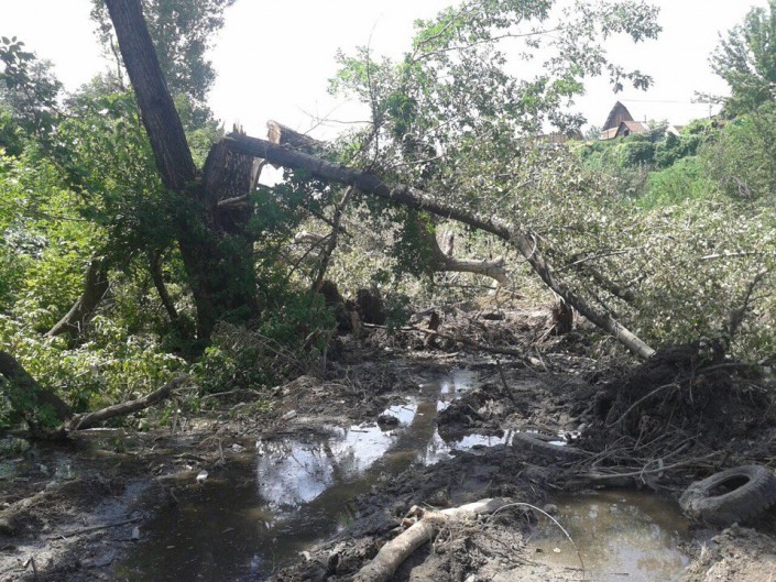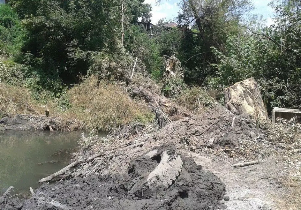 Возмущенные жители рассказали, что местные власти таким образом облагораживают русло реки Мойка. "У нас был прекрасный уголок по улице Свободная, пока туда не пришли подрядчики для облагораживания русла реки. Они сослались на наш районный акимат и довольно варварским методом загнали на середину речки экскаватор, выкорчевали многолетние деревья с корнем, переломали их пополам. Они изменили русло реки, превратив ее в болото, фауна при этом бежала и летела куда глаза глядят. Мы не против благоустройства, но речку близ домов можно было аккуратно очистить, соседи бы помогли. Мы очень любим наш дом за кусочек природы, но теперь на это грязное болото без слез смотреть невозможно", - рассказала местная жительница Екатерина Шахова.