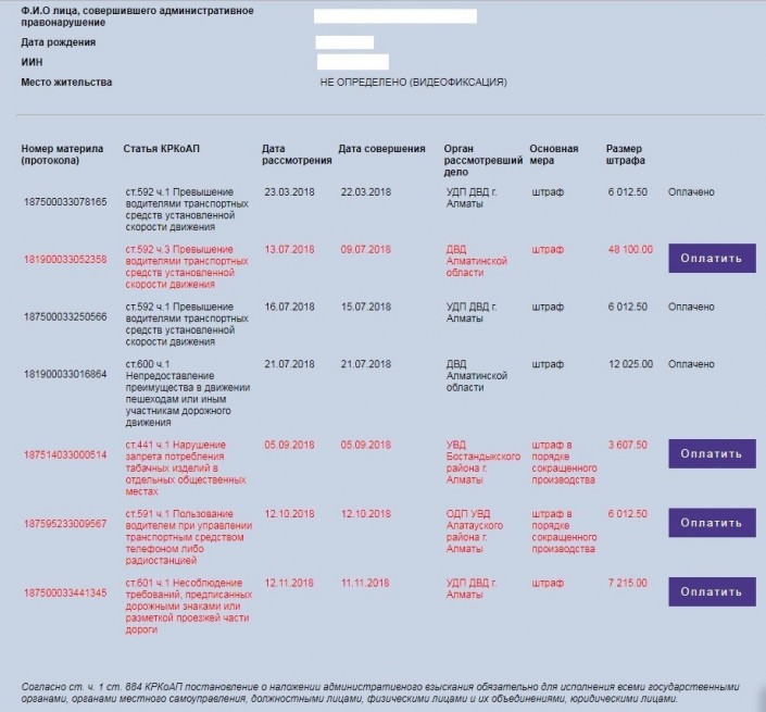 Чужие штрафы он обнаружил на своем имени в начале марта 2018 года, когда ввел номер своего ИИН на сайте Qamqor.gov.kz.
