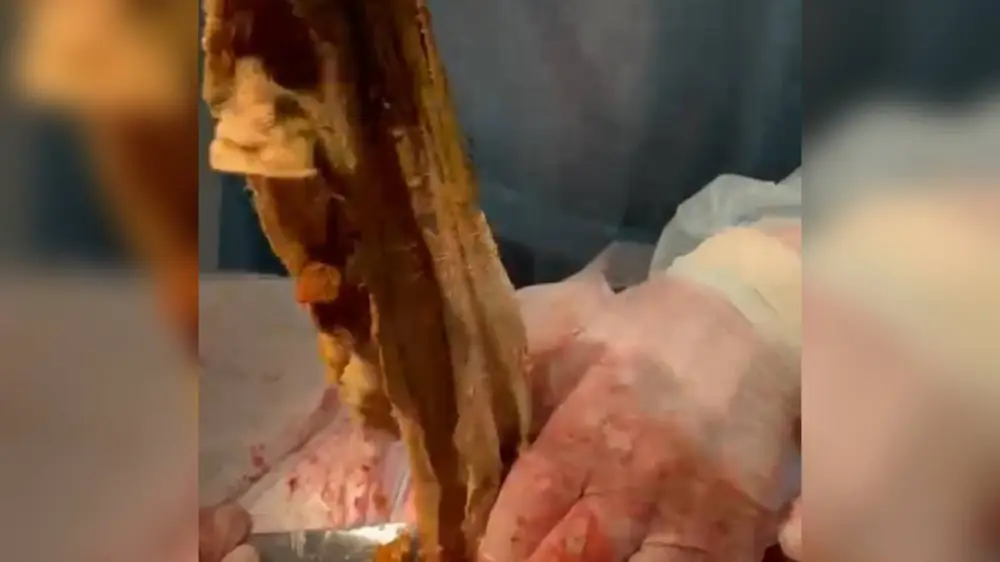 Девять месяцев она мучилась от болей, и лишь в мае 2025 года КТ показала образование в малом тазу. 3 июня во время операции врачи обнаружили внутри неё забытую марлевую салфетку, вызвавшую перитонит и повреждение органов. Часть её кишечника пришлось удалить. Сейчас женщина живёт с калоприемником. Она собирается подать в суд на врачей за халатность.