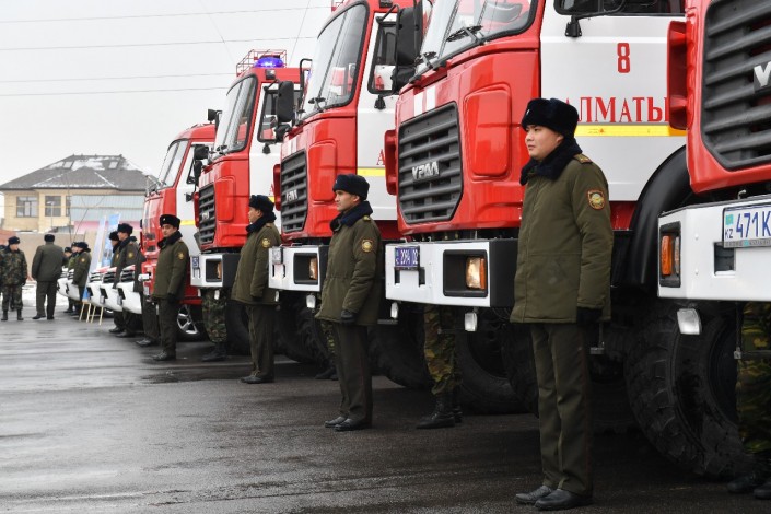 Пожарные подразделения Алматы пополнились новой спецтехникой, закупленной из средств местного бюджета. В гарнизон Департамента по чрезвычайным ситуациям переданы три пожарные автолестницы АЛ-32, восемь автомобилей быстрого реагирования, четыре единицы пожарных автоцистерн и другое.