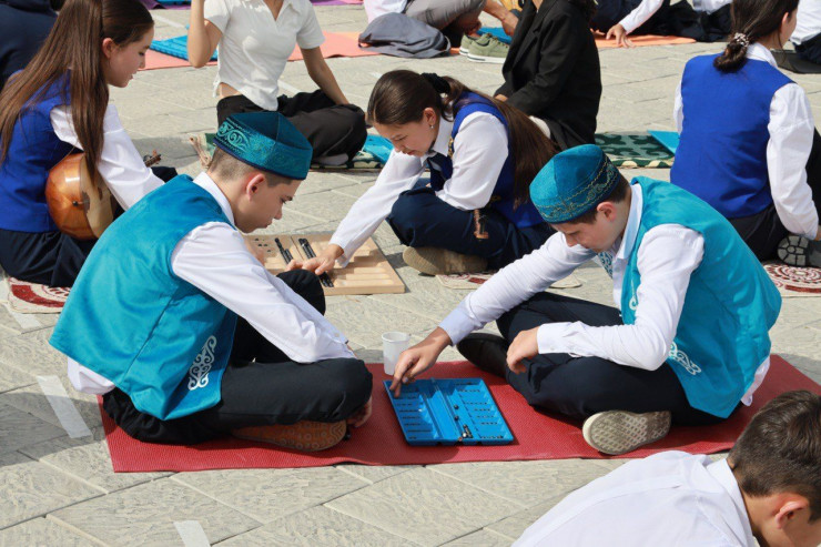 По случаю Дня тогызкумалак, более 2000 алматинских учеников единовременно сыграли в игру тогызкумалак.