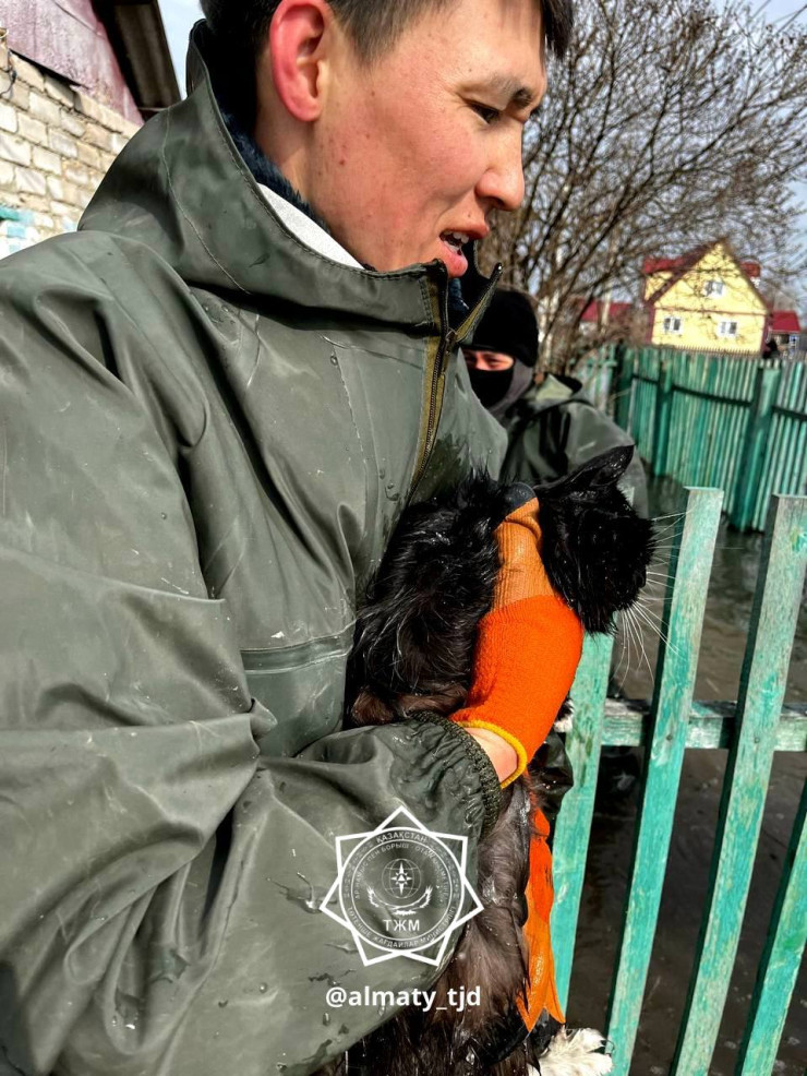 "В одном из подтопленных районов спасли 8 собак и 3 кошек. Не всем жителям в паводковых регионах удается сразу забрать с собой питомцев. Многие впопыхах забывают отвязать псов", - поделился старший опергруппы №2 Жупарбекулы Жаркынбек.