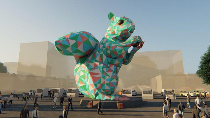 Алматинская белка, которая стала терять привлекательность из-за разрушения соломы, получит новый облик. Гигантского грызуна переоденут в наряд из пластиковых панелей.