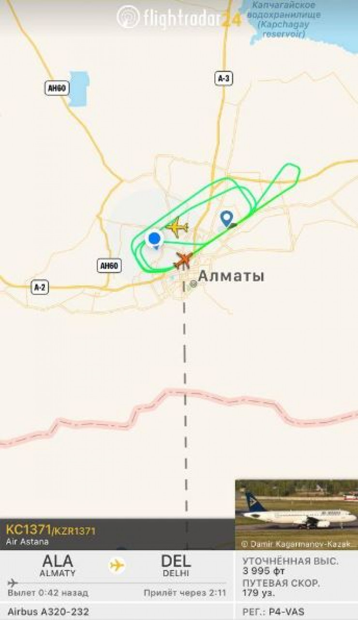 Согласно данным сервиса flightradar.com, самолет авиакомпании Air Astana совершил несколько витков над городом.