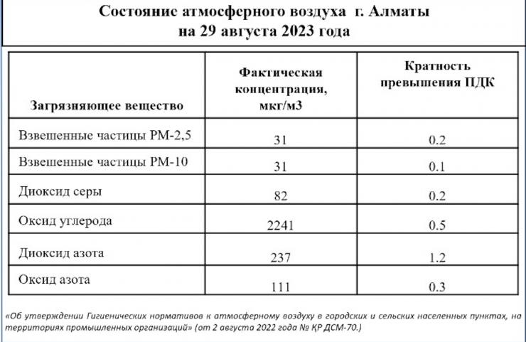 "30 августа 2023 года в городе Алматы ожидаются неблагоприятные метеорологические условия загрязнения воздуха", - говорится на сайте Казгидромета.