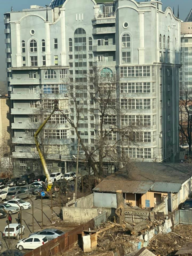 Жители также считают, что в их дворе построят 28-этажное здание. И стройка, по их словам, вот-вот начнется, потому что уже начался спил деревьев.