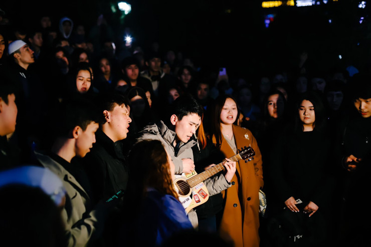 Алматинцы начали собираться на Арбате сразу после заката. Смерть Darkhan Juzz стала настоящим шоком для его поклонников и всех любителей музыки в Казахстане.