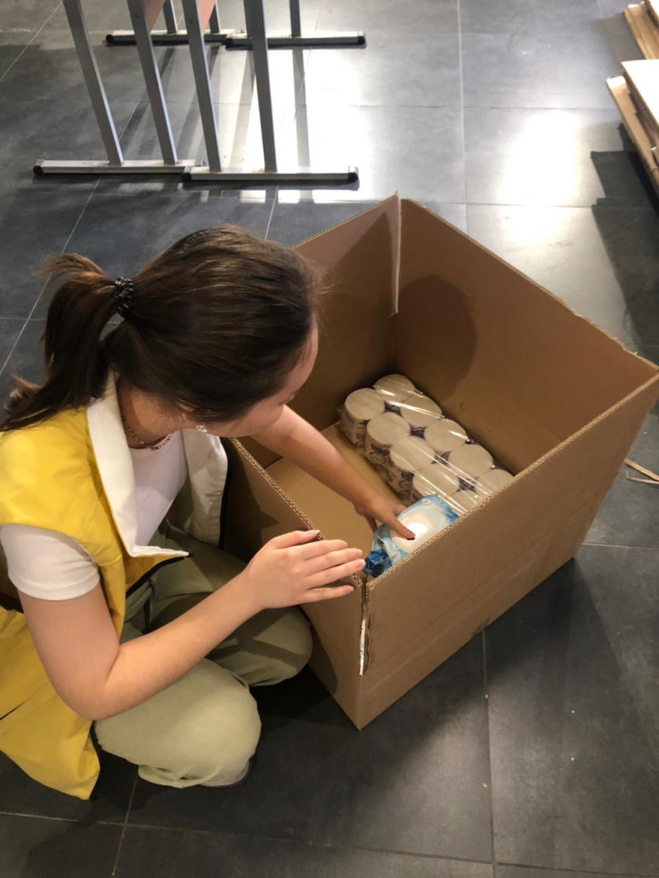 На данный момент собрано 300 килограммов гумпомощи. Среди них 500 штук респираторных масок пожертвовала волонтерская организация LIDER.kz. Также были получены медикаменты, вещи для дома, новорожденных, средства личной гигиены.