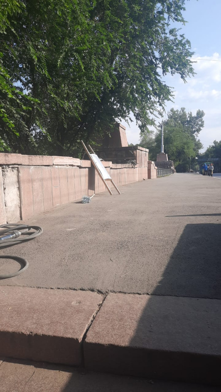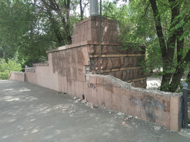 Отмечается, что существующая облицовка со стороны проезжей части проспекта Сейфуллина была выполнена из пиленых гранитных плит (толщиной 20 миллиметров).