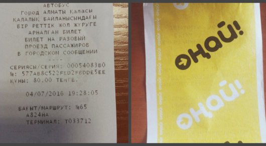"Пользователям карт и проездных необходимо регистрировать каждую поездку на терминале регистрации, удерживая карту, либо проездной на данном оборудовании не менее двух секунд. Напоминаем, что наряду с картой и проездным, билеты "Оңай" на разовый проезд является документом, подтверждающим оплату за проезд. Он должен выдаваться с помощью специального транспортного терминала и содержать: дату и время выдачи билета, которые соответствуют началу поездки пассажира, номер маршрута и государственный номер транспорта, стоимость оплаты за проезд, а также билет должен быть обозначен логотипом "Оңай" на оборотной стороне. Пассажирам ни в коем случае не следует отдавать свой билет иным лицам в салоне транспортного средства и при выходе с салона, не брать и не приобретать чужие билеты, так как образцы с неверными данными по поездке, порванные и иные образцы недействительны", - добавили в пресс-службе.