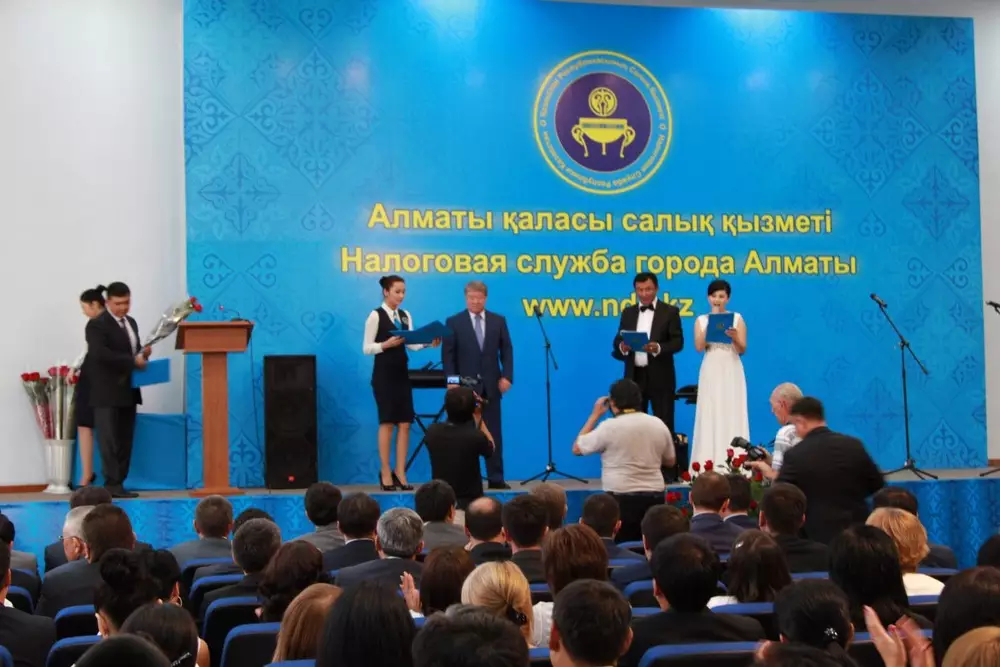 В 2013 году в среднем поступления в бюджет страны от одного алматинца составили 730 тысяч тенге, что в три раза больше, чем в среднем по республике. Об этом заявил аким Алматы Ахметжан Есимов на торжественном мероприятии, посвященном 22-летию образования налоговой службы в Казахстане, передает корреспондент Tengrinews.kz. Глава города поздравил с профессиональным праздником налоговиков, положительно оценил их работу и наградил отличившихся работников почетными грамотами. Кроме этого, Есимов поставил задачу перед налоговыми органами - собрать в этом году в местный бюджет 245-250 миллиардов тенге, в госбюджет - 1,3 триллиона тенге, а в 2014 году - 1,5 триллиона тенге. То есть за три года необходимо добиться роста налоговых поступлений в 1,5 раза. Кроме этого, аким поручил создать единую городскую базу, где будет осуществляться централизованный учет штрафов, наложенный всеми уполномоченными органами города и сократить сроки предоставления документов налогоплательщиков с использованием современных информационных технологий. По данным руководителя налогового департамента Алматы Бейбута Карымсакова, с начала года в государственный бюджет обеспечено 567 миллиардов тенге, что на 59 миллиардов тенге больше показателя аналогичного периода прошлого года. "За шесть месяцев текущего года 789 тысяч налогоплательщиков, а это более половины населения города, посетили налоговые органы. Из них 92 процента населения положительно оценили работу налоговиков", - заявил Карымсаков. По его словам, в среднем в налоговых службах на одного человека приходится по три минуты на обслуживание и ожидание. Кроме этого, в 2013 году налоговики зарегистрировали более 24 тысяч человек, работающих на 65 рынках Алматы. От данной категории лиц за шесть месяцев в бюджет поступило 662 миллиона тенге.