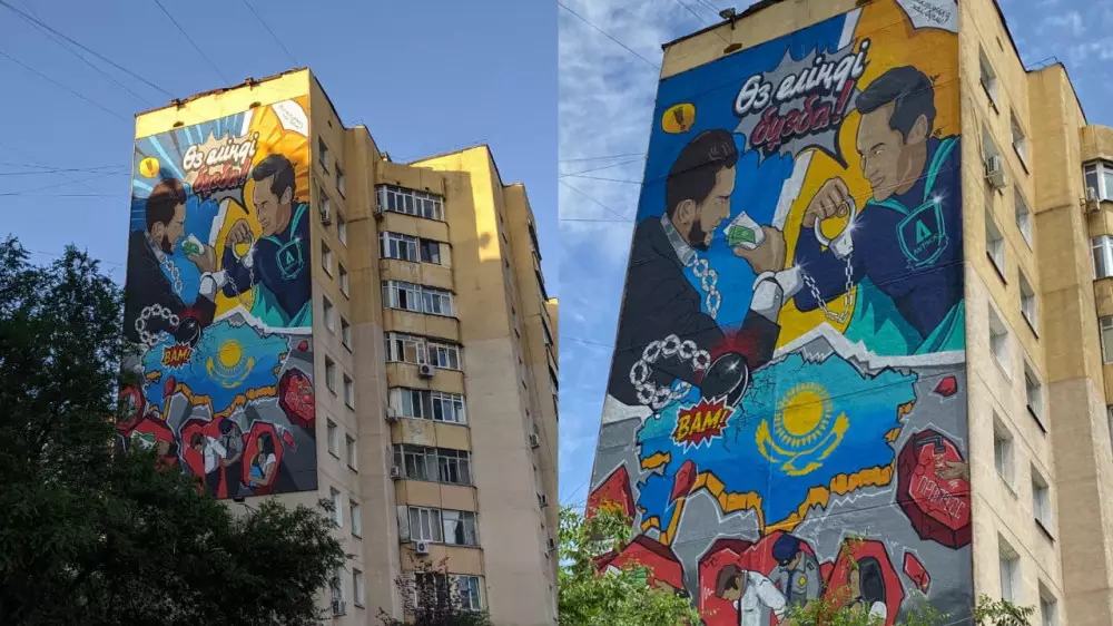 Ко Дню защиты детей молодые художники Алматы подарили городу мурал, посвященный борьбе с коррупцией. Интересное граффити нарисовали на фасаде жилого дома на пересечении улиц Мендикулова и Достык.