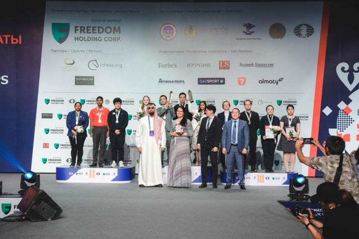 В торжественной церемонии награждения приняли участие заместитель акима Алматы Асем Нусупова, а также президент Азиатской федерации шахмат Шейх Султан бин Халифа Аль Нахайян. Чемпионом в открытом блиц-турнире стал мастер FIDE, 20-летний Арыстан Исанжулов из Семея (рейтинг стандарт - 2408, рейтинг в блице – 2450). Второе место – у шахматиста из Индии Венкатеша Пранава, на третьем месте – наш соотечественник Денис Махнев.