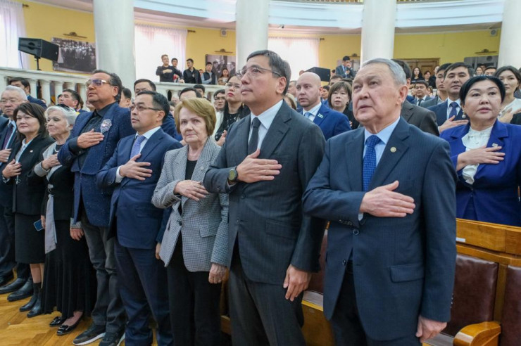 Символично, что проведение торжественной церемонии вручения государственных наград в преддверии Дня Республики, который вернулся в календарь праздничных дат спустя 13 лет, состоялось в зале, где 32 года назад была принята Декларация о государственном суверенитете Казахской ССР.