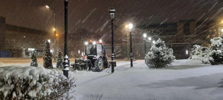 С 3.00 на дороги выехали колонны коммунальных машин для сгребания снега в сопровождении патрульных машин дорожной полиции.