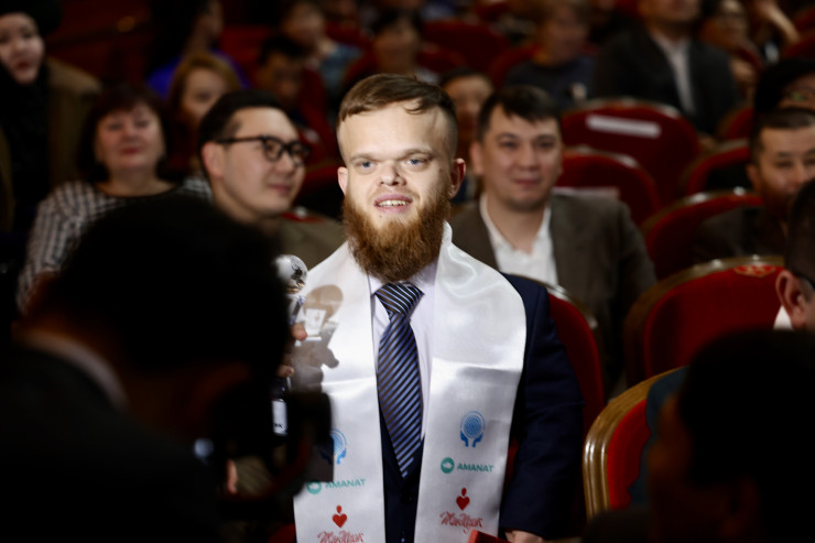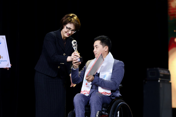 "За вклад в позитивное изменение общественного сознания по отношению к людям с инвалидностью" статуэтку получил общественный деятель, участник и организатор массовых забегов для людей с особыми потребностями Нурлан Сыздыков из Астаны.