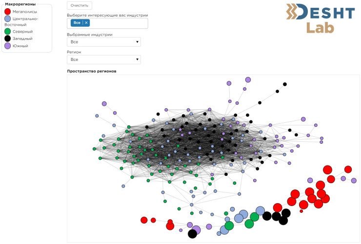 "Вы можете в параметрах выбрать интересующую индустрию и тогда на карте останутся только те регионы страны, которые специализируются в этой сфере, в которых есть достаточно количество активных бизнесов и в них работает достаточно людей.