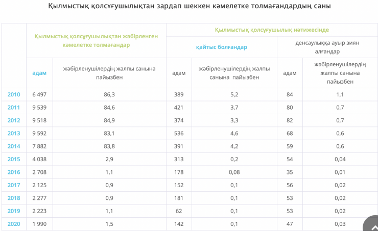 2020 жылы қылмыстық қолсұғушылықтан 142 кәмелетке толмаған бала қайтыс болған. 2016 жылы бұл көрсеткіш 35 болған.