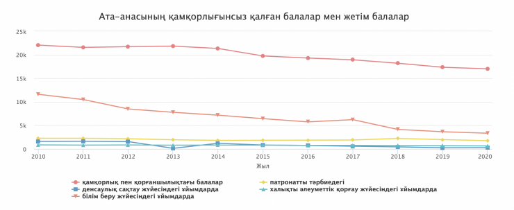 2020 жылы ата-анасының қамқорлығынсыз қалған балалар мен жетім балалар саны 4 254 болған.