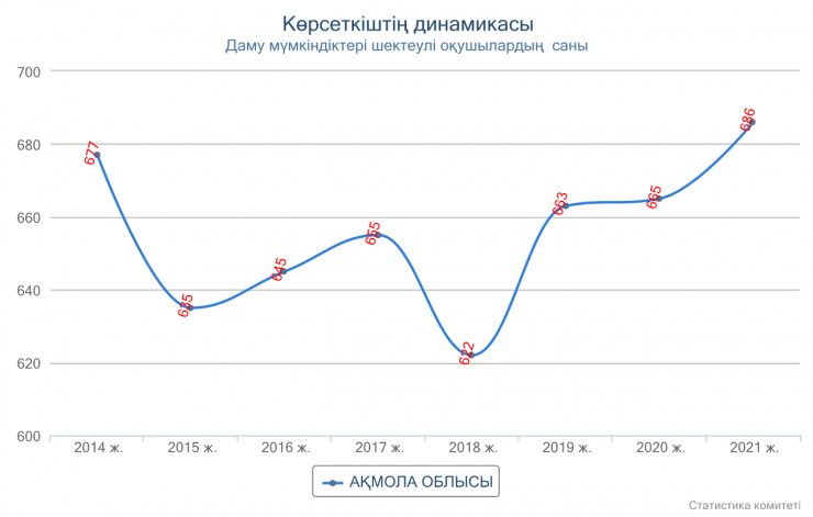 Қазақстанда даму мүмкiндiктерi шектеулi оқушы саны - 15 238. Қарағанды облысында - 1454, Шығыс Қазақстан облысында - 1698.