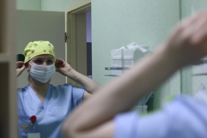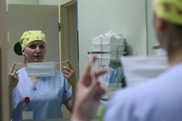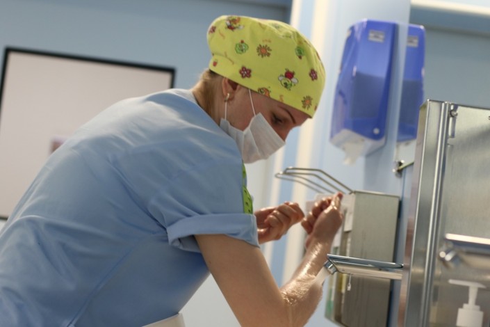 Много раз переодеваемся - если выходим из отделения, а потом заходим обратно. Каждый раз мы обрабатываем руки. Гигиена  рук - первое, что  должно соблюдаться.